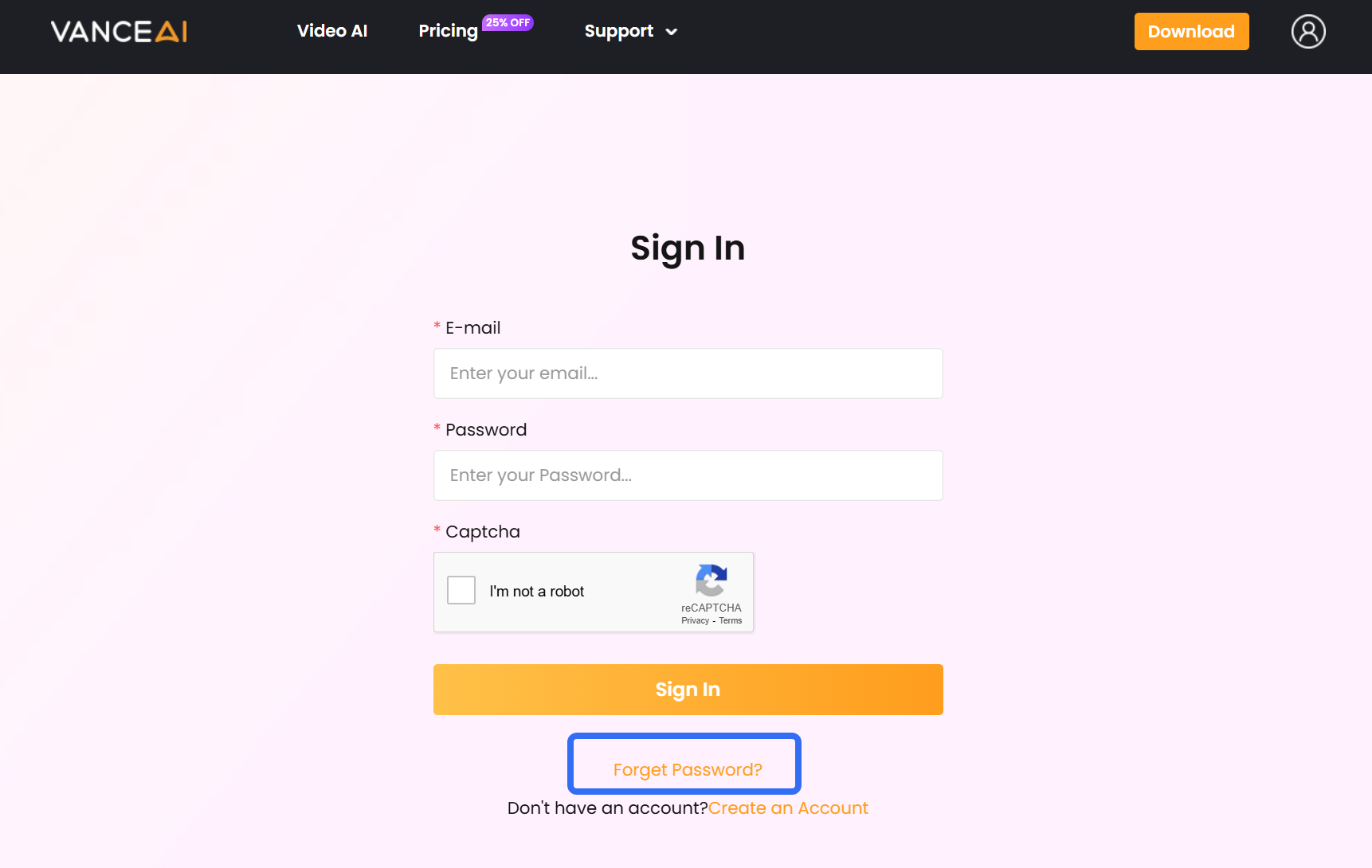 Step 1: Go to Video AI's login interface and click “ Forgot Password”